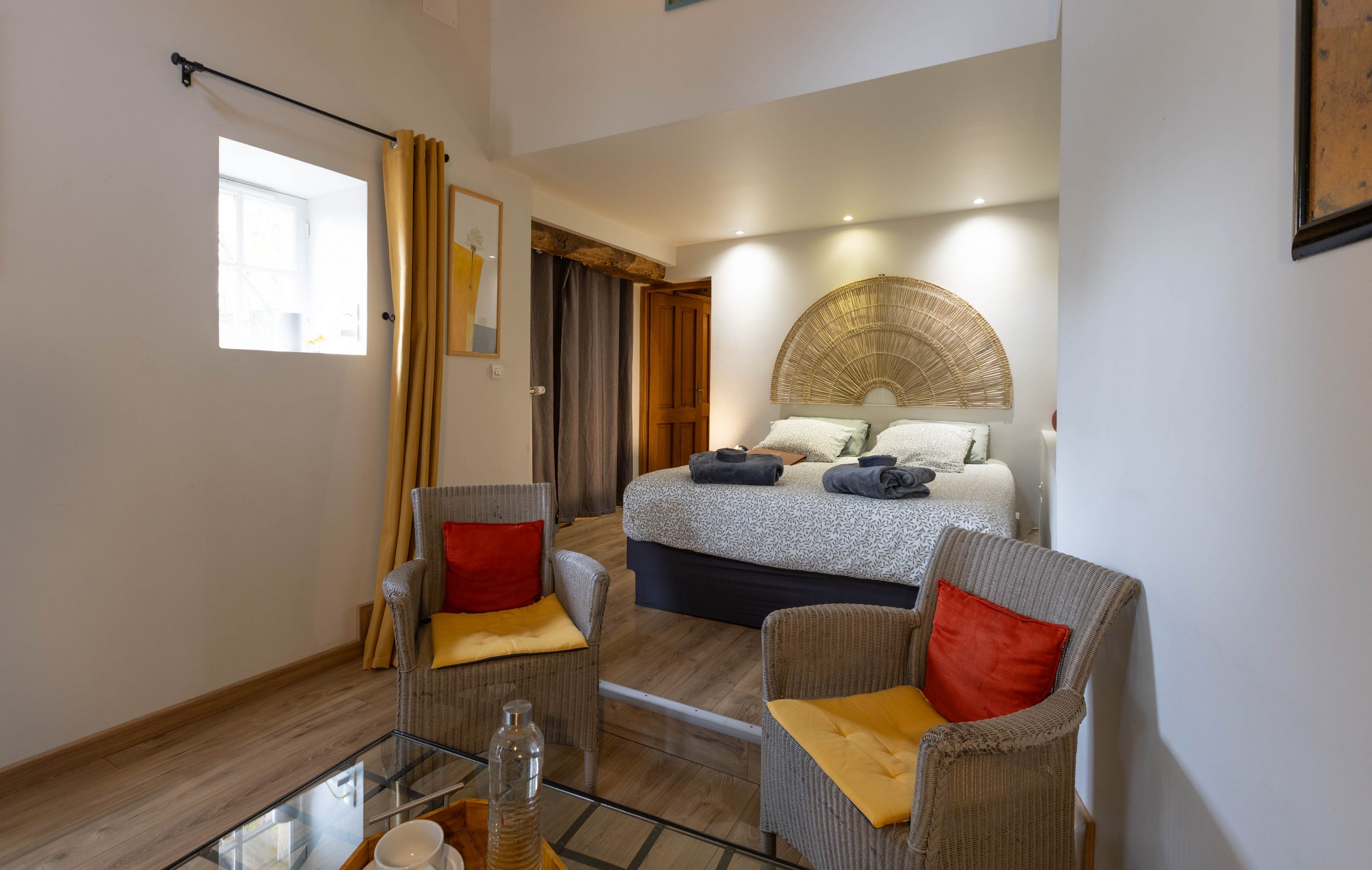 Située dans le corps de Ferme principal est première chambre à voir le jour à la Ferme de L’Oudon. La Romane d’une surface de 25m2 pour 2 personnes, de par son architecture allie poutres et pierres anciennes dans la plus pure tradition de la Ferme Normande.