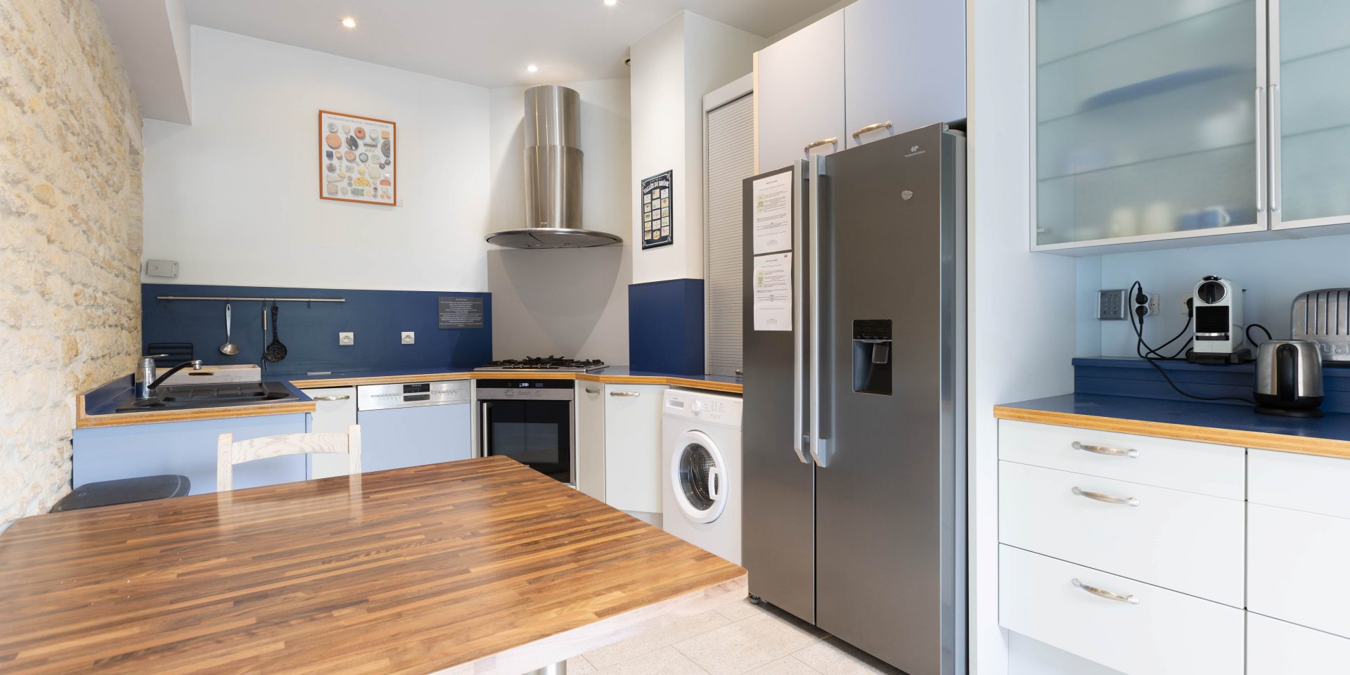 – Cuisine américaine équipée (four, mirco-ondes, lave vaisselle, machine à laver, réfrigérateur machine à expresso…) donnant sur le jardin