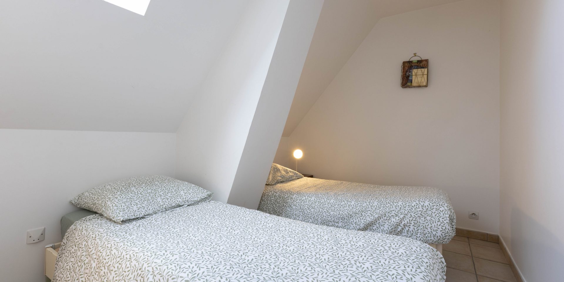 Une chambre avec deux lits simples de 90 cm.