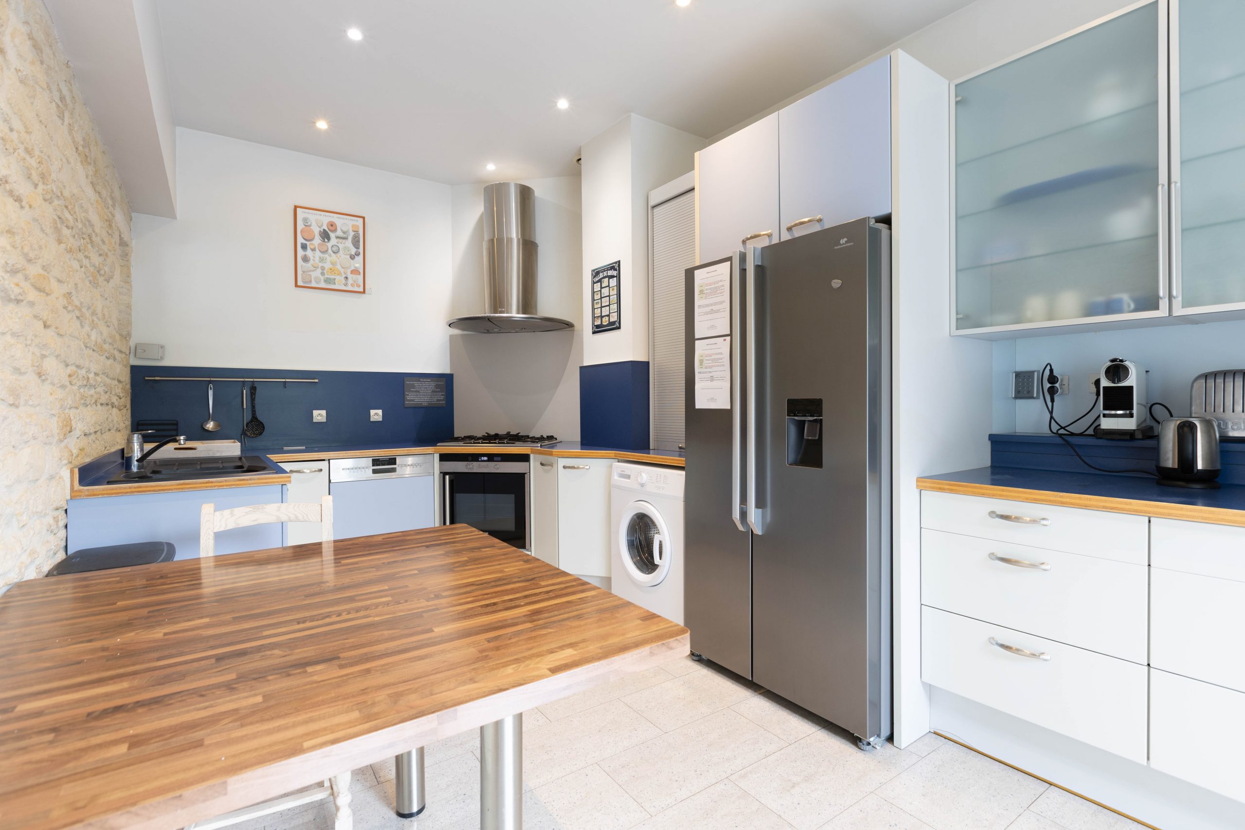 – Cuisine américaine équipée (four, mirco-ondes, lave vaisselle, machine à laver, réfrigérateur machine à expresso…) donnant sur le jardin