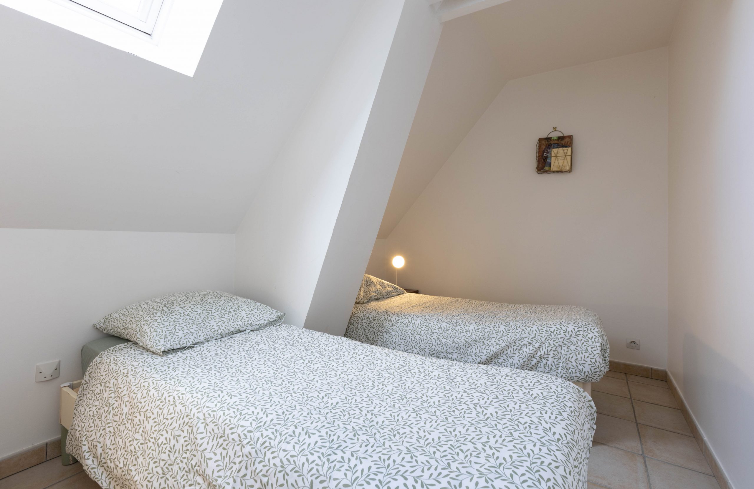Une chambre avec deux lits simples de 90 cm.