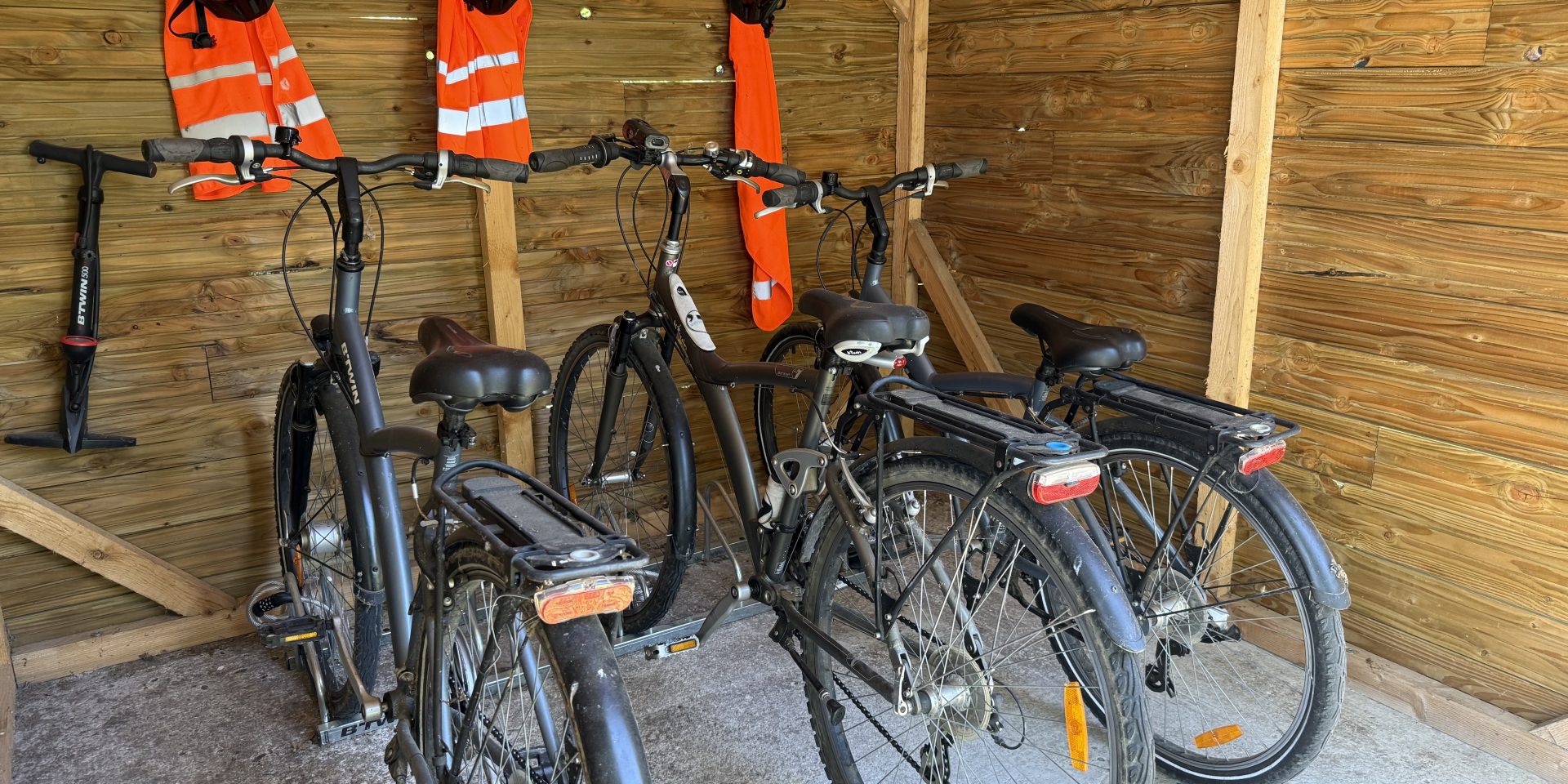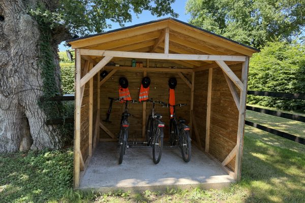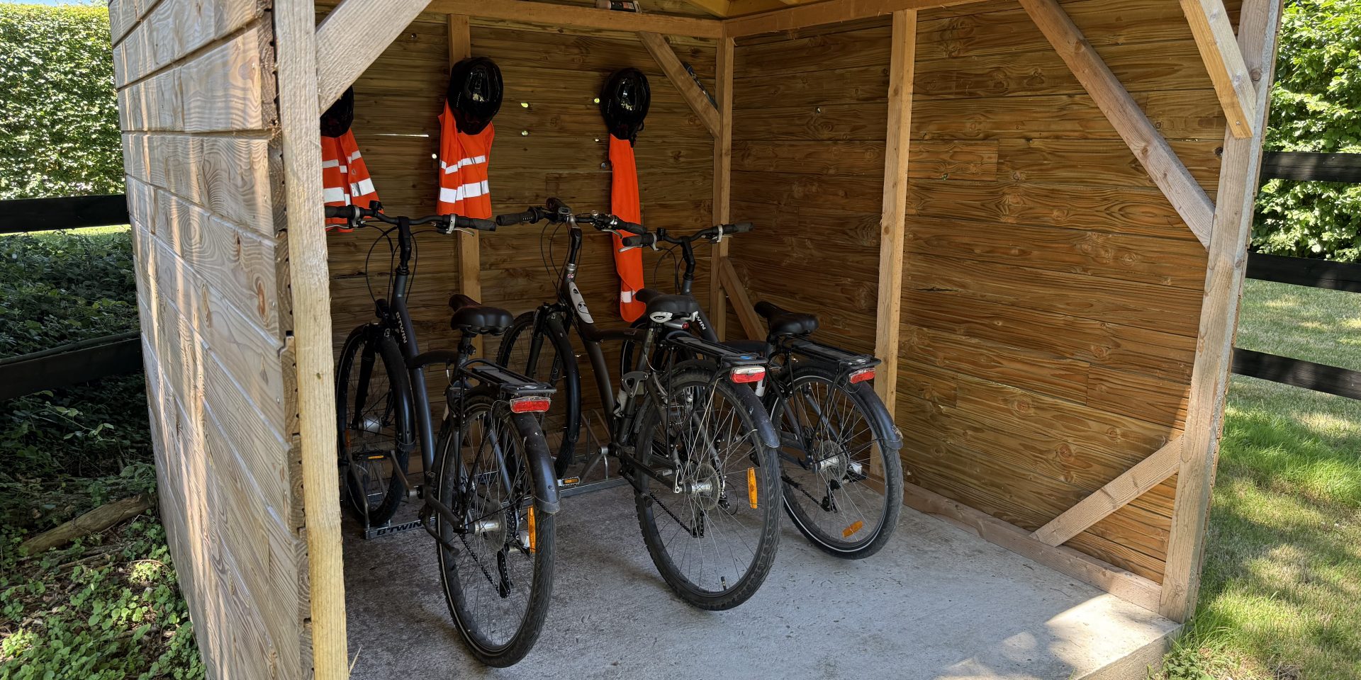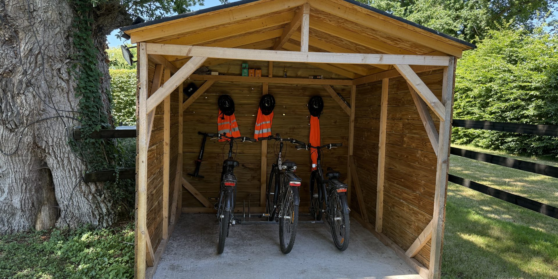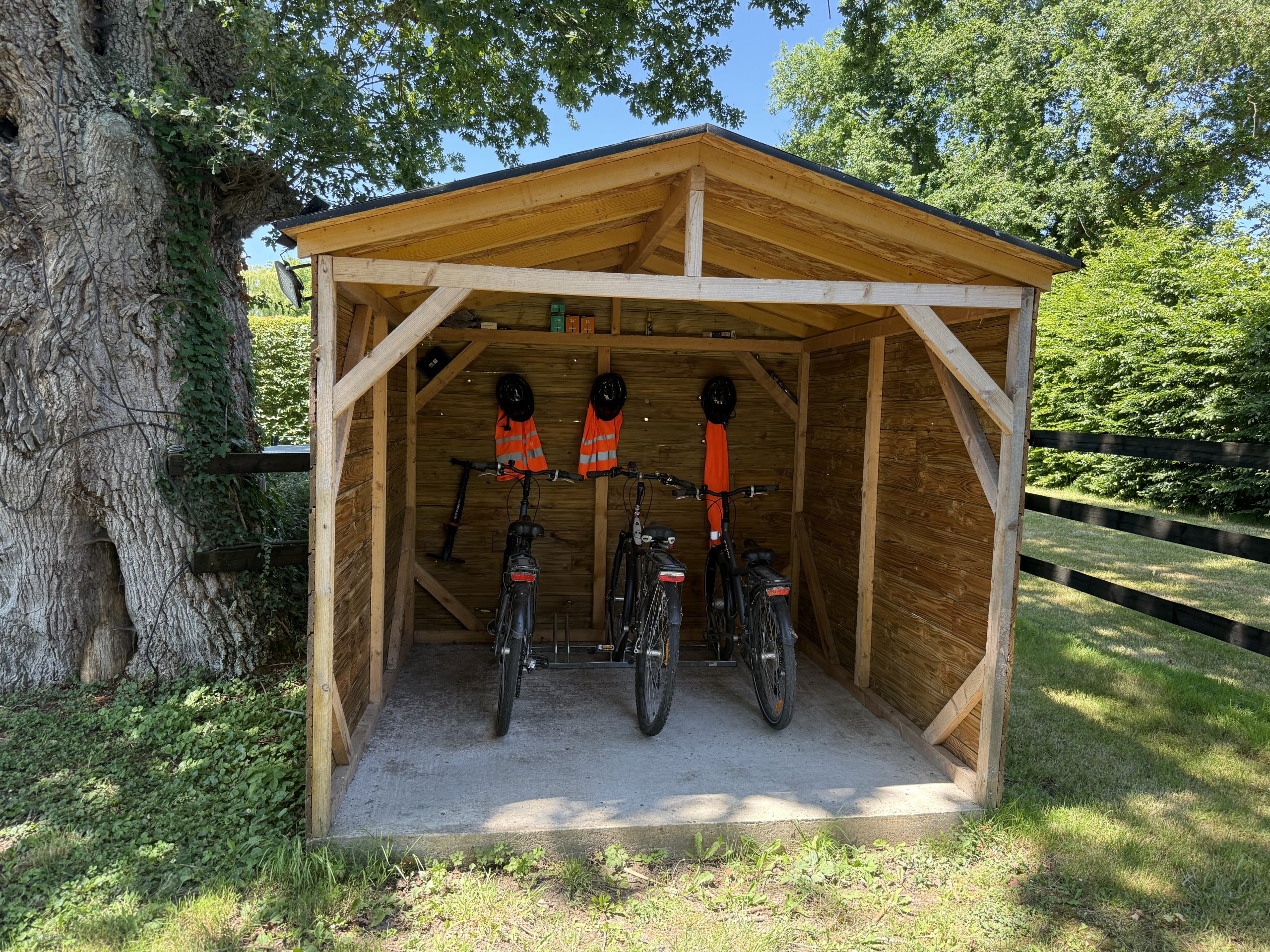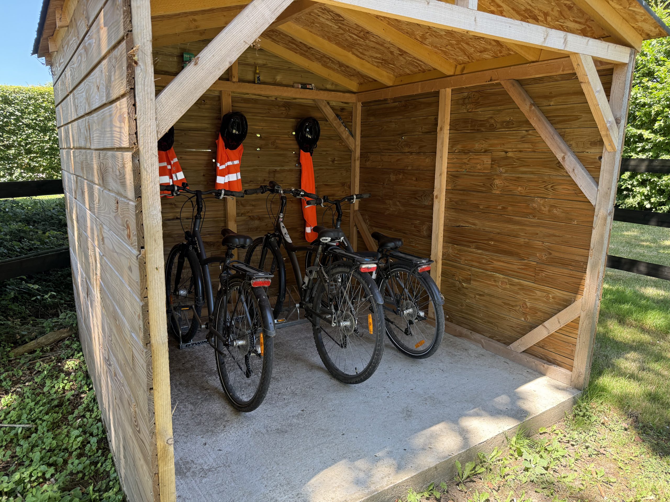 La cabane a vélo est à votre disposition près du champs des chevaux!